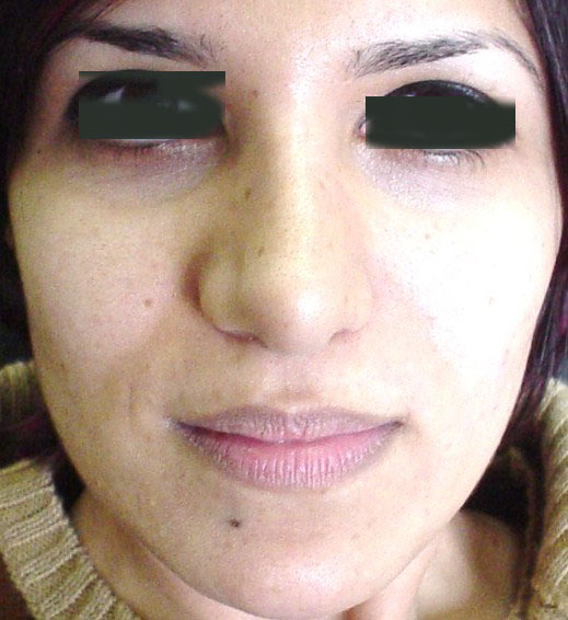 Empty cheeks in a 27- year old female: 3 ml of fat were injected in each side